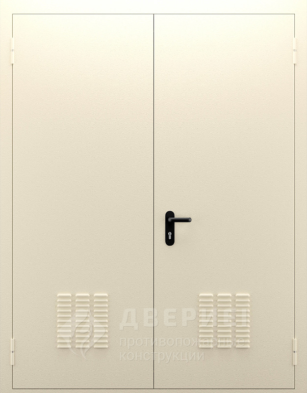 Белая пожарная дверь двупольная с ветн решеткой №89
