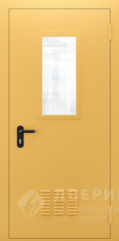 Жёлтая дверь металлическая со стеклом и вент решеткой №69